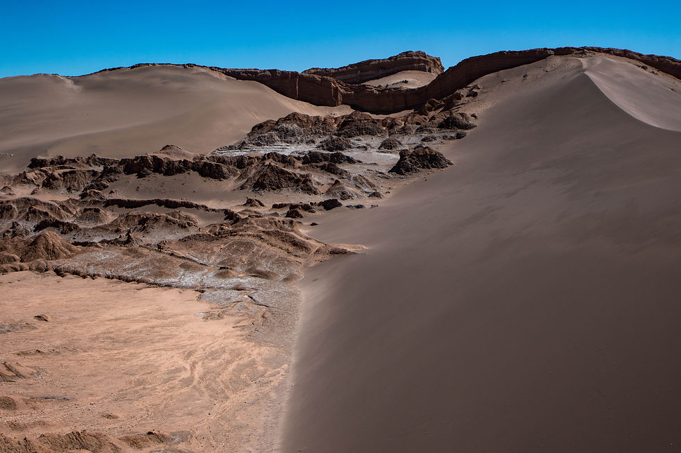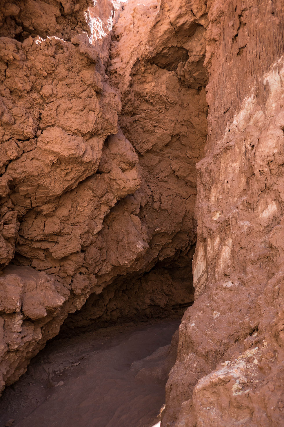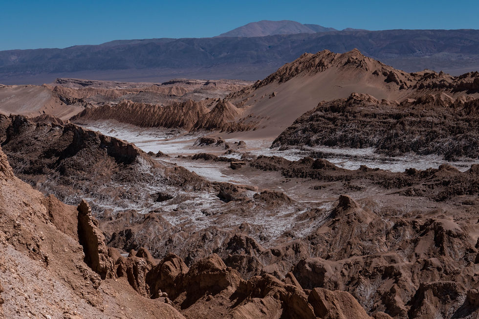 Pour notre dernière journée à San Pedro de Atacama, nous décidons de louer des vélos et de nous rendre à la Vallée de la Mort. Nous ne faisons pas le tour ordinaire mais optons pour un tour de 20km passant par un tunnel et qui longe toute la vallée sur les crêtes. J'avoue c'est un tour plutôt officieux. Le gars qui nous a donné les vélos a dit "Si, pero es muy complicado...!". Une fois dans le tunnel, nous rencontrons un Brésilien de Sao Paulo, Diego, qui nous demande le chemin. Il finira le tour avec nous. La vue depuis les crêtes se mérite sérieusement, mais en vaut tellement la peine. Nous sommes épatés par cette grandeur, ces formes, ces couleurs et cette beauté. Nous nous sentons tout petits à côté de ce panorama.