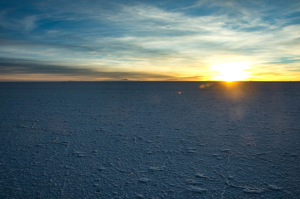 C'est à 5:00 du matin qu'il faut nous lever. Trente minutes plus tard Virgilio toque à notre porte pour nous indiquer que le déjeuner est prêt. Trente minutes encore plus tard, nous voilà dehors entrain de charger le toit de la voiture de nos gros sacs pour partir sur cette mer de sel qu'est le Salar d'Uyuni afin d'y admirer le lever du soleil. Les couleurs du ciel à la sortie de l'hostel étaient déjà magnifiques et nous pouvons les admirer tout le long du trajet. Une fois sur place, nous oublions le froid et le manque de sommeil pour contempler un spectacle tout simplement magique. On est là, et c'est pour de vrai. Les couleurs se mélangent, du rose, du rouge, du bleu et finalement le jour complet est là. Je crois que nous sommes tous émus (sauf les chauffeurs qui voient cela toutes les semaines), et nous repartons en silence pour la suite du voyage.