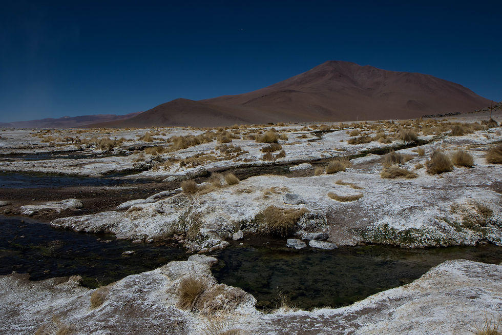 Virgilio nous lance un petit "vamos?" et nous voilà déjà remontés dans son 4x4 pour nous rendre à 4900m d'altitude où se trouvent des geysers. En arrivant, nous reconnaissons tout de suite cette odeur d'oeuf pourri déjà rencontrée lors du volcan Lazcar: le souffre. Les geysers en dégagent beaucoup. Nous sommes moins impressionnés par ce que nous voyons. En effet, les geysers de Tatio de San Pedro de Atacama nous avaient époustouflés. Ici, les geysers sont plus petits et ne dégagent que de la fumée ou des bulles dans la boue bouillante. Le décor reste beau. Nous profitons.